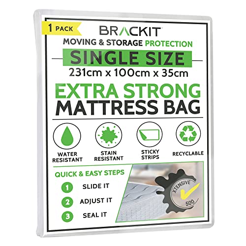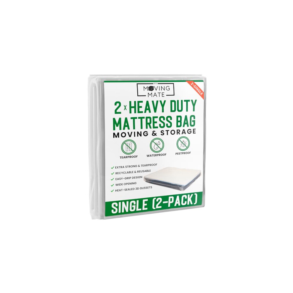Mattress Bags For Moving & Storage (Single) - Heavy Duty Single Size Mattress Cover for Moving House & Self Store - Plastic Mattress Protector Bag - Strong, Reusable, Tearproof - 3ft