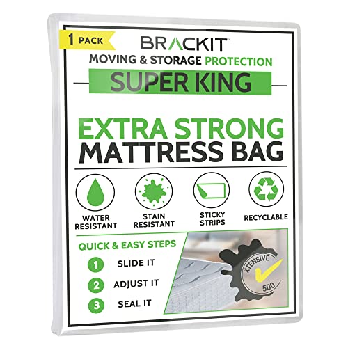 Super King Mattress Bags For Moving & Storage - Heavy Duty Super King Size Mattress Cover for Moving House & Self Store - Plastic Mattress Storage Bag Protector - Strong, Reusable, Tearproof - 6ft