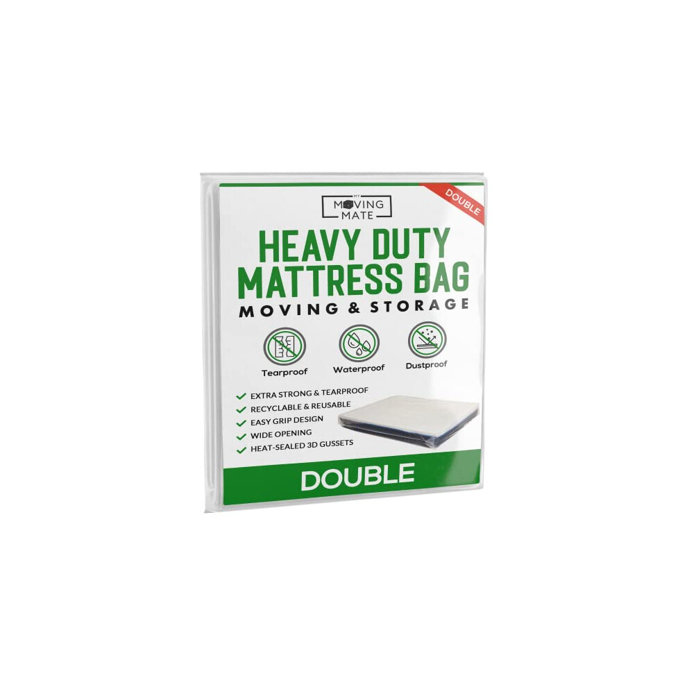 Double Mattress Bags For Moving & Storage - Heavy Duty Double Mattress Cover for Moving House & Self Store - Plastic Mattress Storage Bag Protector - Strong, Reusable, Tearproof - 4ft 6"