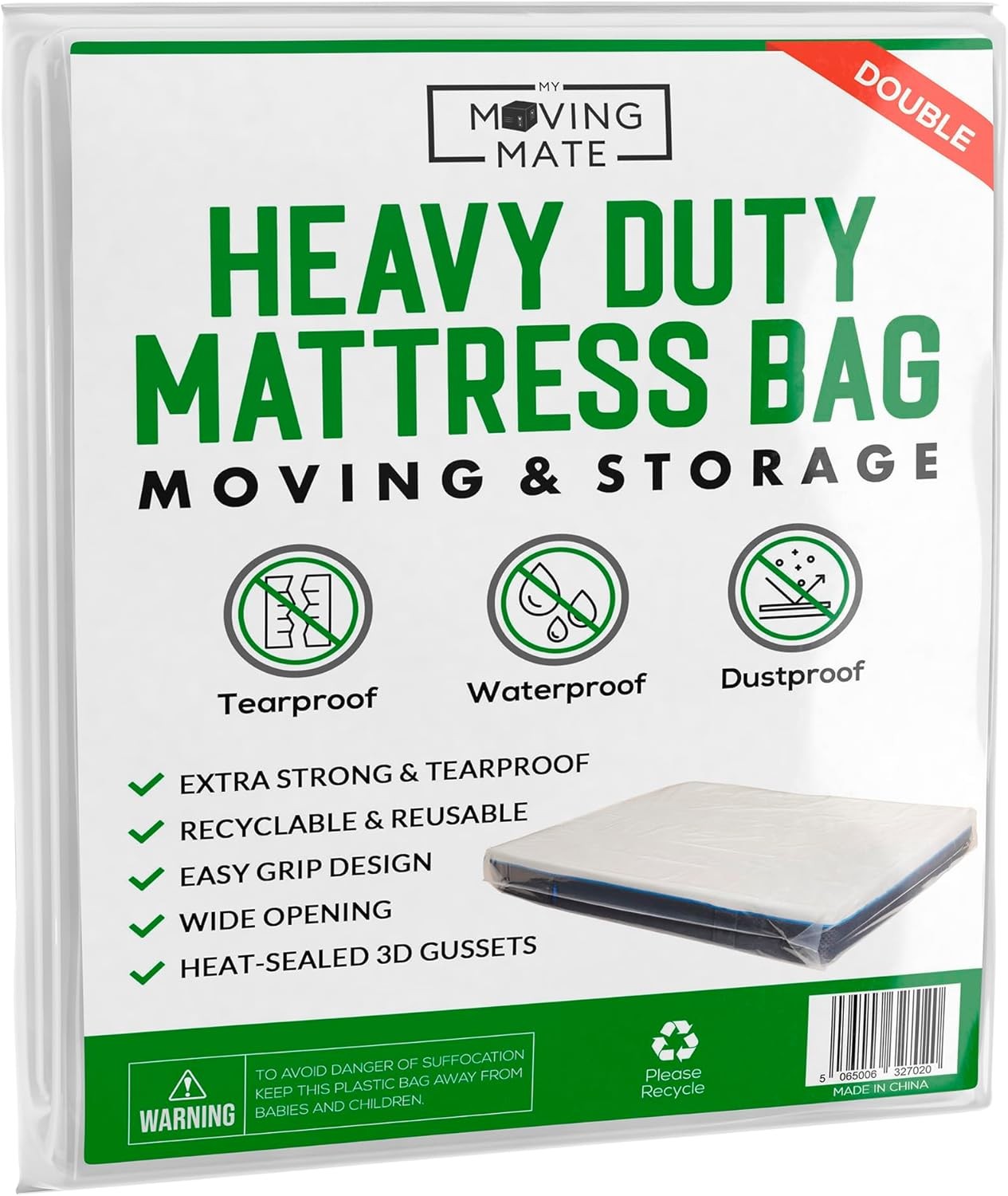 Double Size Mattress Bag for Moving and Storage - 5 Mil Cover