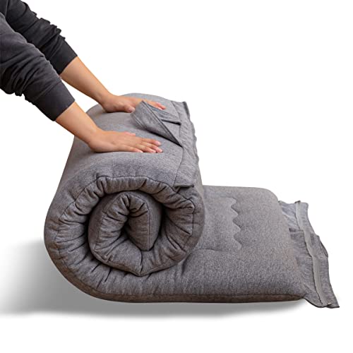 MAXYOYO Portable Foldable Futon Mattress, Hypoallergenic Fabric and Foam Mattress Pad with Handle and Zipper for Outdoor Indoor Camping Guest Car (Gray, 135x190cm)