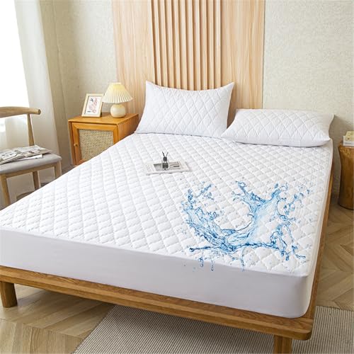 Odot Quilted Mattress Protectors Extra Deep Double King Size, Waterproof All-Around Elastic Mattress Pad Fitted Bed Sheet Bed Cover Noiseless Topper Fitted Mattress Cover (White plaid,160x200+28cm)