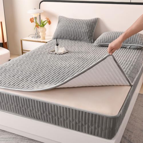 uyeoco Mattress Protector King Size/single bed/kingsize bed 150x200 180x200cm – Quilted King Mattress Protectors Fits Mattresses up to 30cm Deep, Breathable Super King Topper(Grey,150 * 200+15)