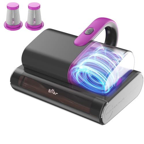 Bear Mattress Vacuum Cleaner, 15Kpa Suction & 253.7nm UV-C Lamp Sterilization 5 in 1 Handheld Dust Mite Vacuum Cleaner, HEPA Filter Dual-Container Handheld Futon Vacuum for Bedding, Sofa & Pillows