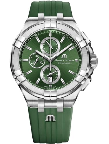Maurice Lacroix Aikon Green AI1018-SS000-630-5 Men's Watch Chronograph Analogue Quartz with Green Rubber Strap, Green, Modern