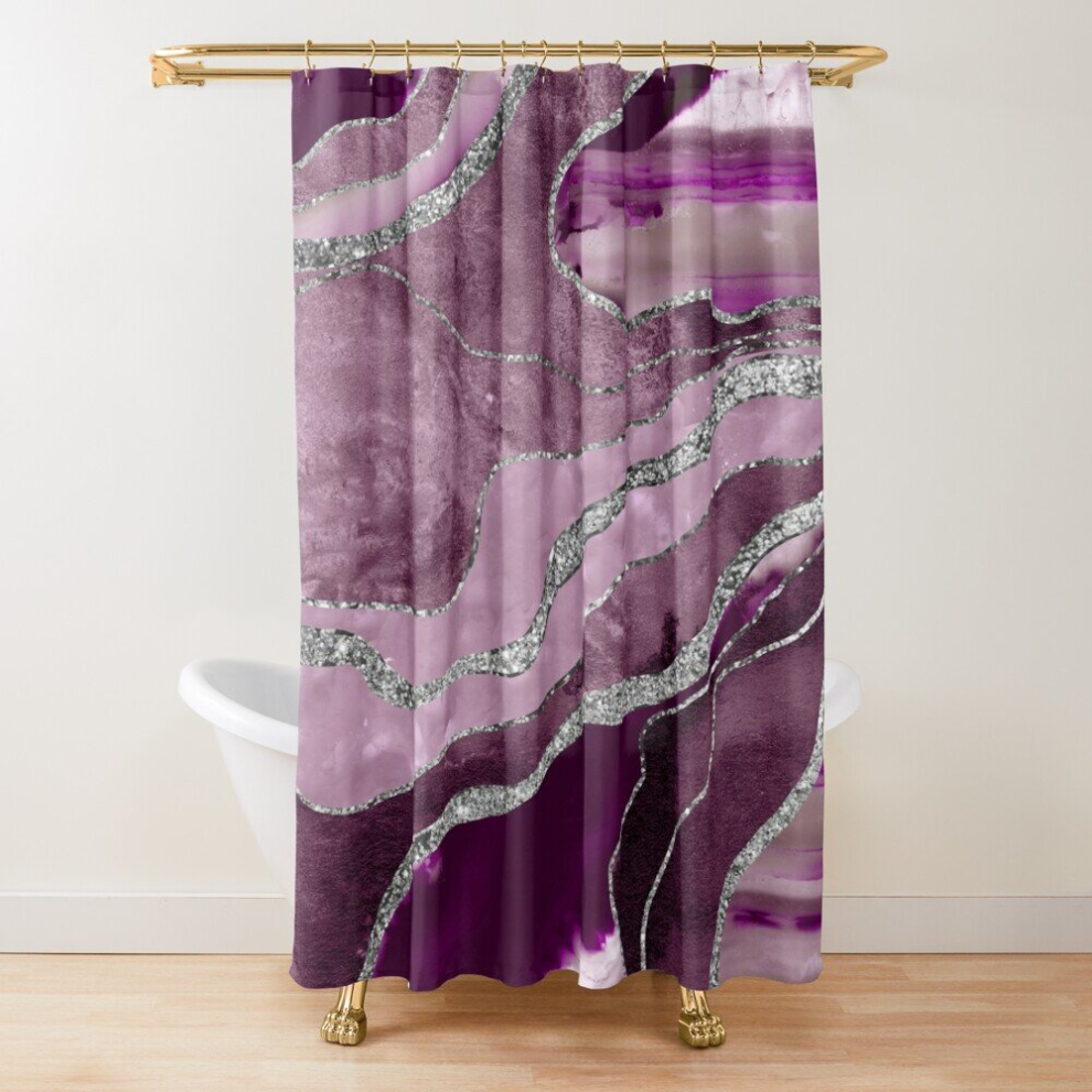 Shower Curtains Mauve Pink Marble Agate Silver Glitter Glam #1 (Faux Glitter) #decor #art for Bathroom Decor 72x72 inches