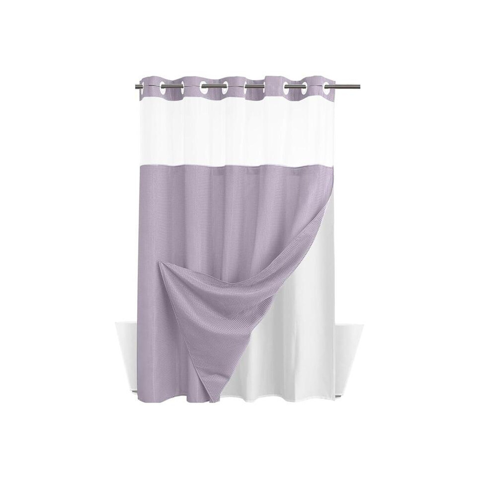 (Mauve Purple, 72*87inch) Waffle Pattern Shower Curtains, 1 Count Double Layer Waterproof Decoration Curtain, Bathroom Accessories Removable Shower Cu