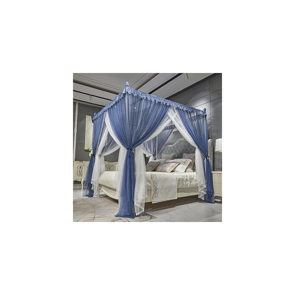 Princess Mosquito Net Curtains Bed Canopy For Girls, Double Layer Sheer Mesh, King Size, Pale Mauve And Blue-Navy