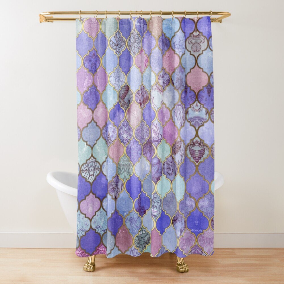 Shower Curtains Royal Purple, Mauve Indigo Decorative Moroccan Tile Pattern for Bathroom Decor 72x72 inches