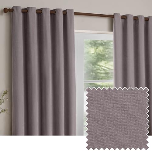 furn. Yard Heavy Chenille Eyelet Curtain Pair – Lined Room Darkening Soft Velvet Curtains (Mauve - Width 117 x Drop 137cm)