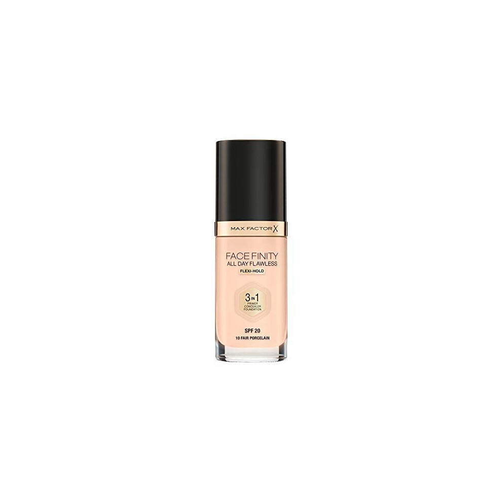 Max Factor Facefinity 3-in-1 All Day Flawless Liquid Foundation, SPF 20 - 10 Fair Porcelain, 30 ml