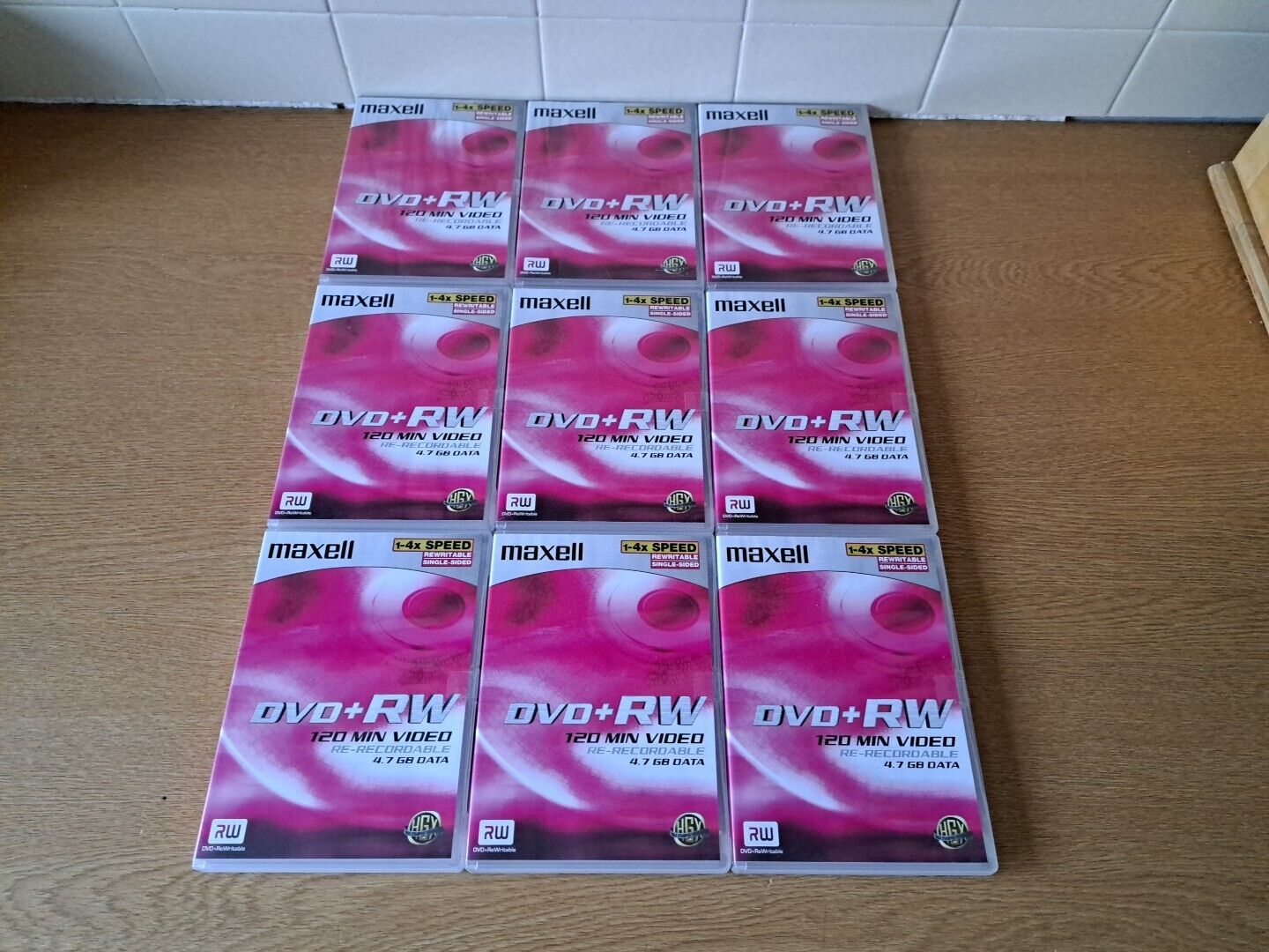 Maxell DVD+RW 120min Video 1-4x Speed Re-Recordable 4.7GB Data Unused Joblot X 9