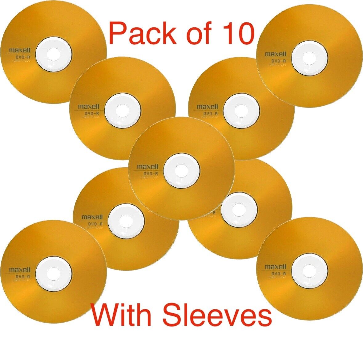10 x MAXELL DVD-R BLANK DISCS RECORDABLE DVD 16x 4.7GB 120 MINS PC with Sleeves