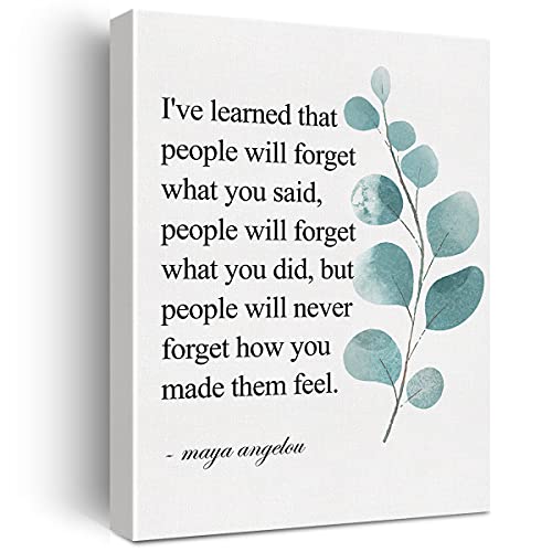 JerLoe Inspirational Canvas Wall Art Motivational I've Learned That People Will Never Forget How You Made Them Feel Maya Angelou Quote Canvas Print Positive Painting Wall Decor Framed Gift 12x15 Inch