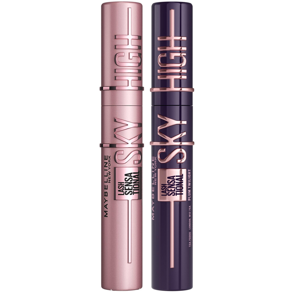 Maybelline New York Lash Sensational Sky High Mascara, Volumising & Lengthening Mascara, Washable Flake-Free Black + Plum Twilight (Duo Bundle)