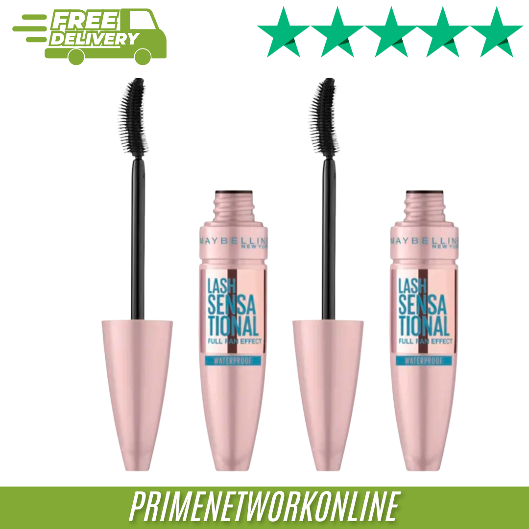 2 X Maybelline Lash Sensational Waterproof Mascara Black 100% ORIGINAL ⭐⭐⭐⭐⭐