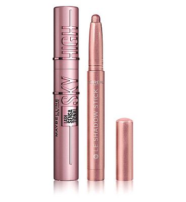 Maybelline Sky High Mascara Black & L'Oreal Paris Shadow Stick Mauve Duo Bundle