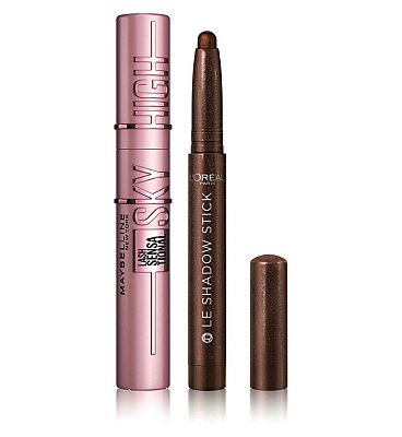 Maybelline Sky High Mascara Black & L'Oreal Paris Shadow Stick Brown Duo Bundle