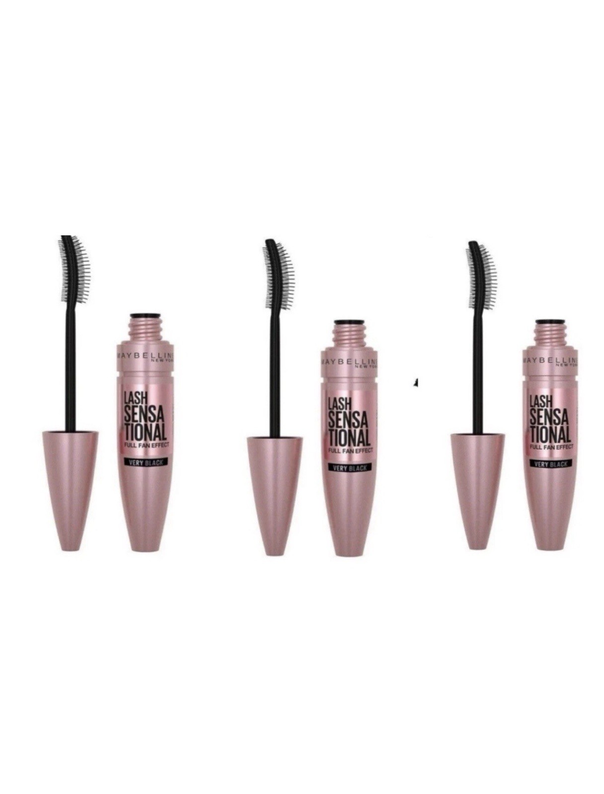 3X Maybelline Lash Sensational Mascara Very Black 9.5ml – Full Fan Effect Lashes