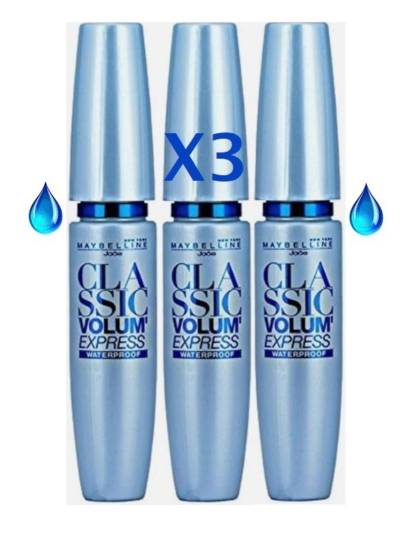 3x Maybelline the Classic Volum' Express Waterproof Mascara Black Sealed