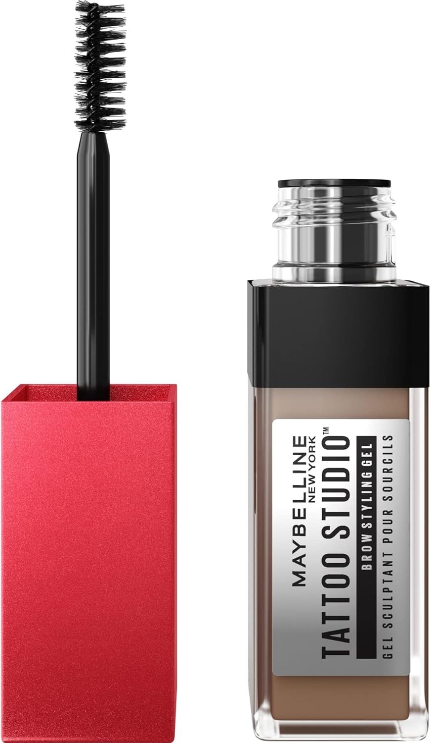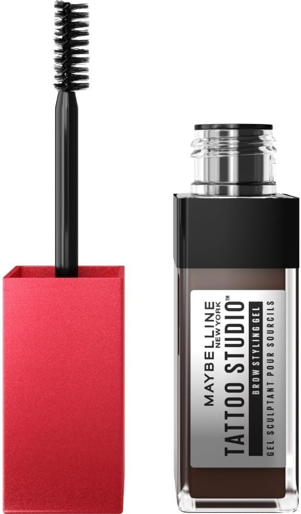 Maybelline Tattoo Studio Brow Styling Gel, Waterproof Eyebrow Make Up, Brow Tint for Up to 36HR Wear, Deep Brown, 1 Count