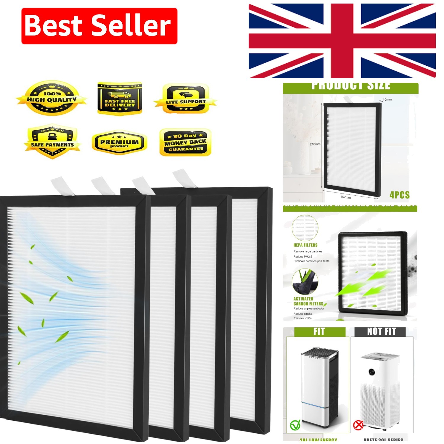 4Pack Hepa Filter Compatible with Meaco Arete One 12L Dehumidifier & Air Purifie