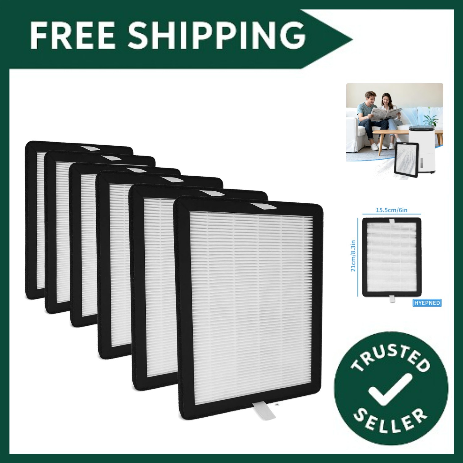 True HEPA Filter Replacement, 6-Pack for MeacoDry Arete One 10L & 12L Models