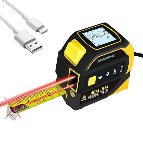 FAHEFANA Laser Tape Measure Rechargeable, 40M Laser Distance Meter & 5M Tape Measure, Digital Tape Measure with LCD Display, Area Distance Volume Pythagorean (M, FT, INCH)