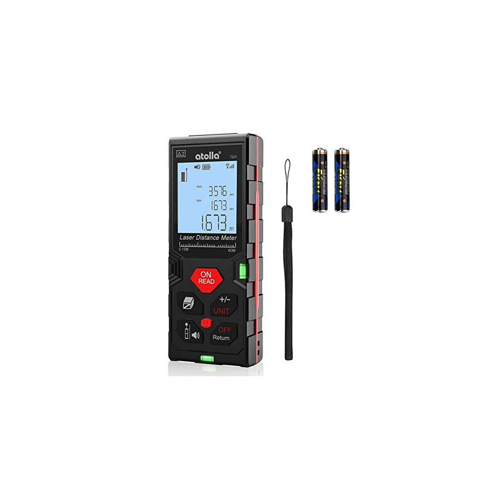 atolla Laser Measure Device, Laser Distance Meter up to 60m / ± 2mm Digital Measure Tool Range Finder with Bubble Level and Large LCD Backlit and Wa