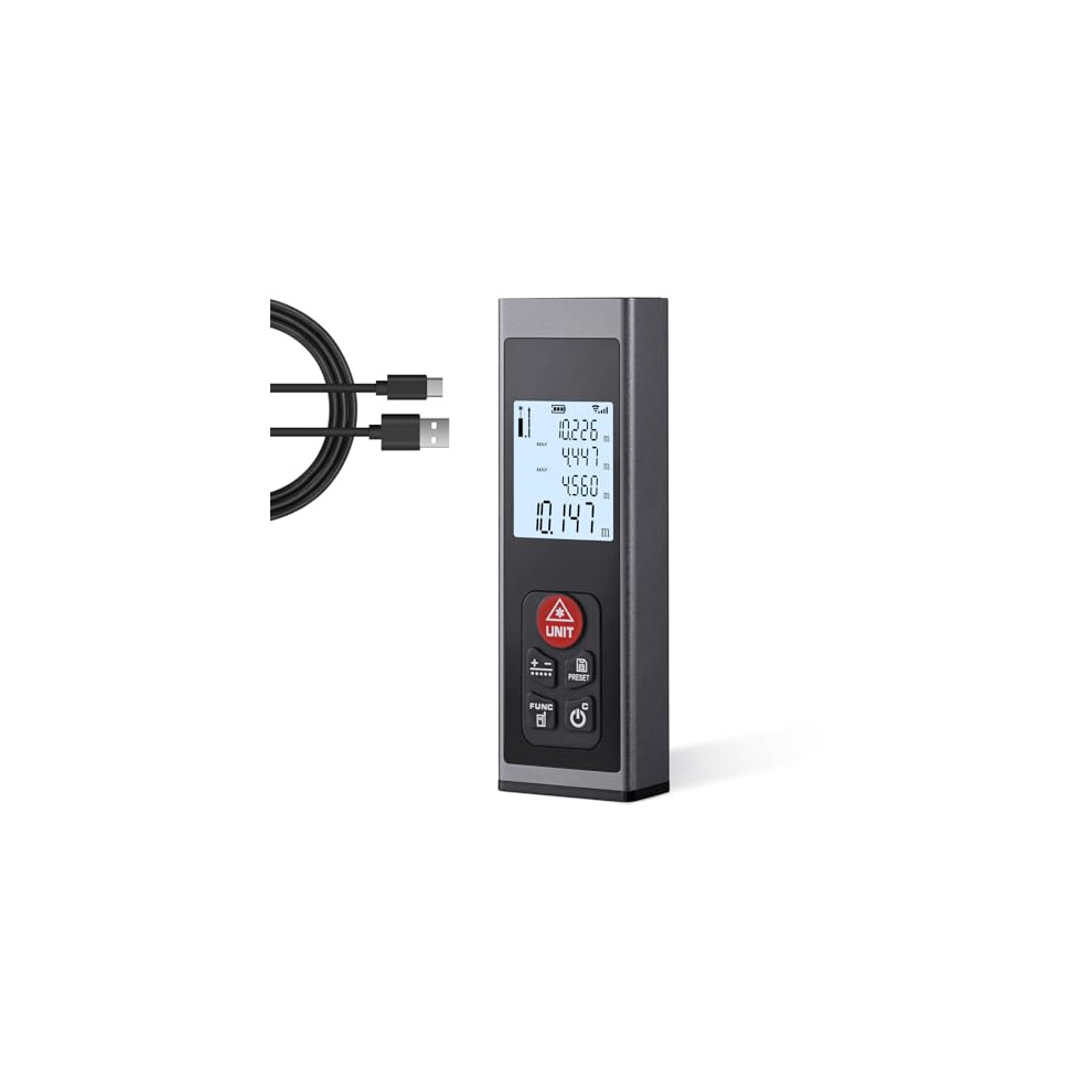 Laser Measure - Hychika Laser Distance Measure Rechargeable 40M Laser Rangefinder With LCD Backlit M/In/Ft Multiple