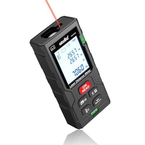 atolla Laser Measure Device, Laser Distance Meter up to 60m / ? 2mm Digital Measure Tool Range Finder with Bubble Level and Large LCD Backlit and
