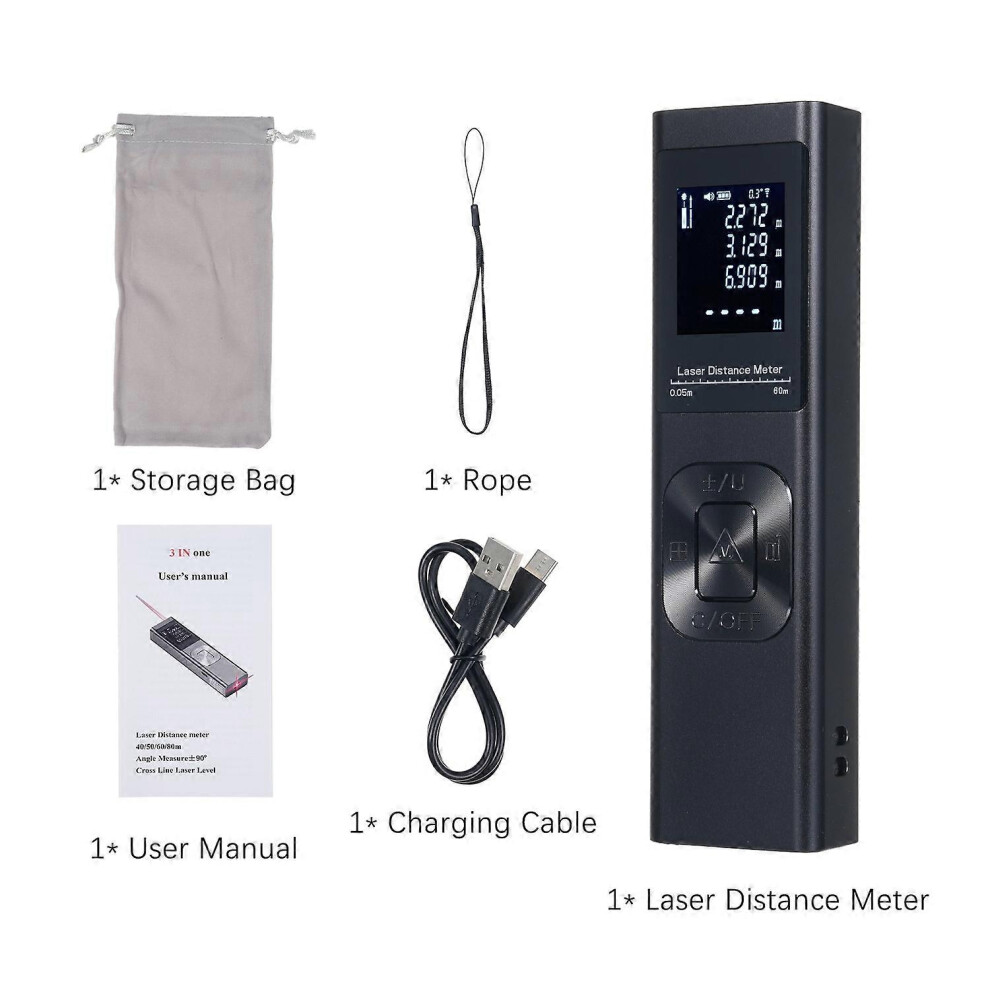 (As show, One size) 3in1 Laser Distance Meter Angle Measure Cross Line Laser Level Electric Angle Sensor with Backlit LC