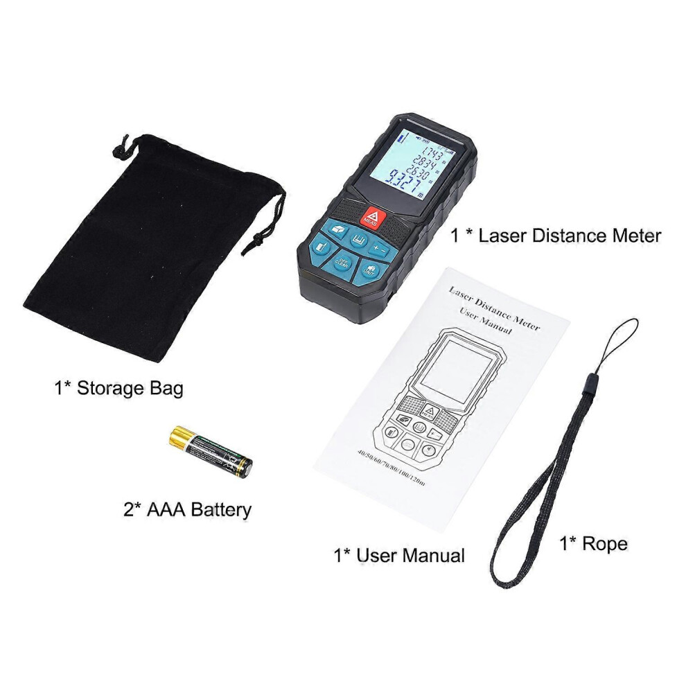 (As show, One size) Laser Measure Laser Distance Meter Angle Sensor with 2inch Backlit LCD Screen High Accuracy Multi-Me