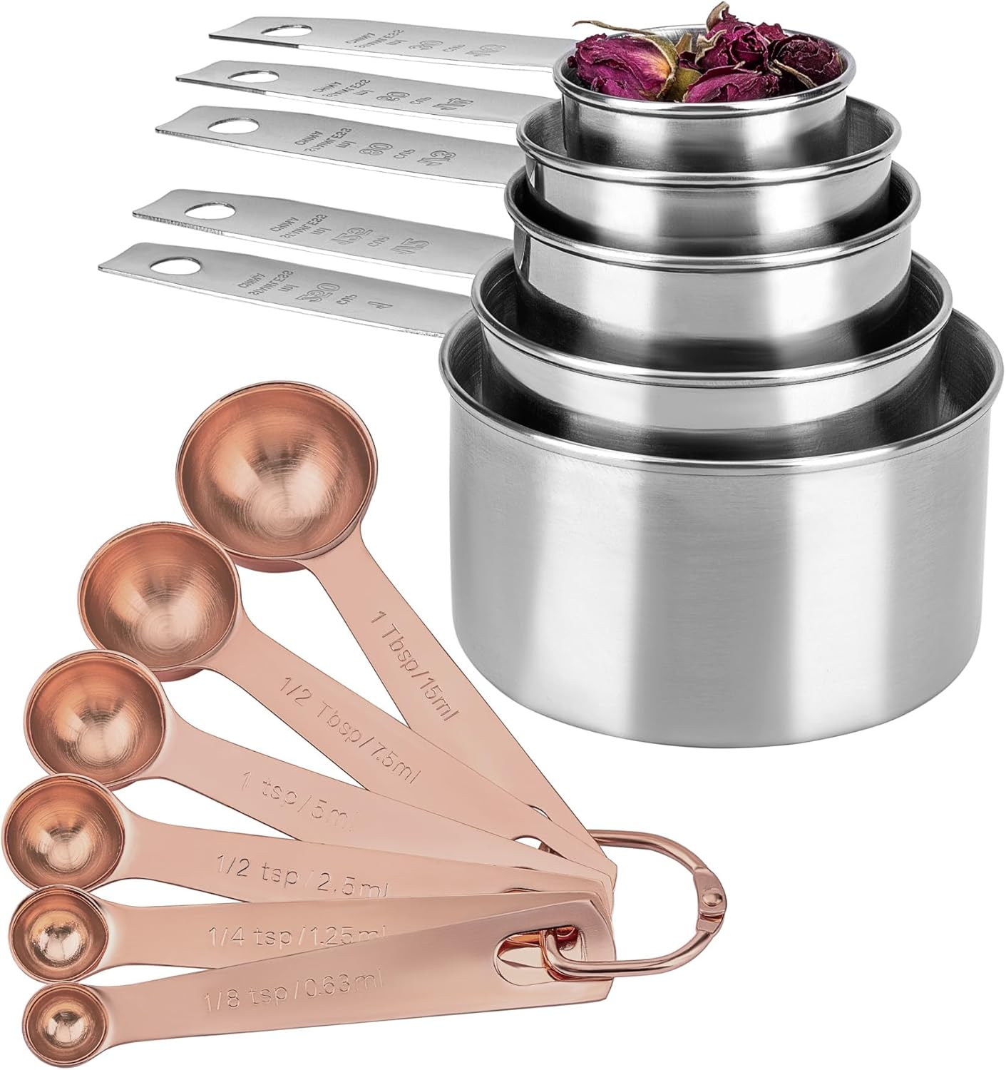 Stainless Steel Measuring Cups and Measuring Spoons Set, Heavy Duty 6 Rose Gold