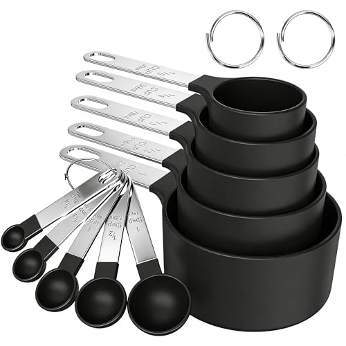 INMORVEN Measuring Cups and Spoons Set, 10-Piece BPA-Free Stackable Kitchen Tools with Engraved Markings for Dry & Liquid Ingredients, Ideal Baking Essentials (Black)