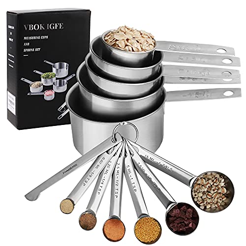 Measuring Cups & Spoons Set of 12 -VBOK IGFE Premium Stainless Steel 5 Measuring Cups and 6 Measuring Spoons with Leveler,for Dry and Liquid Ingredient