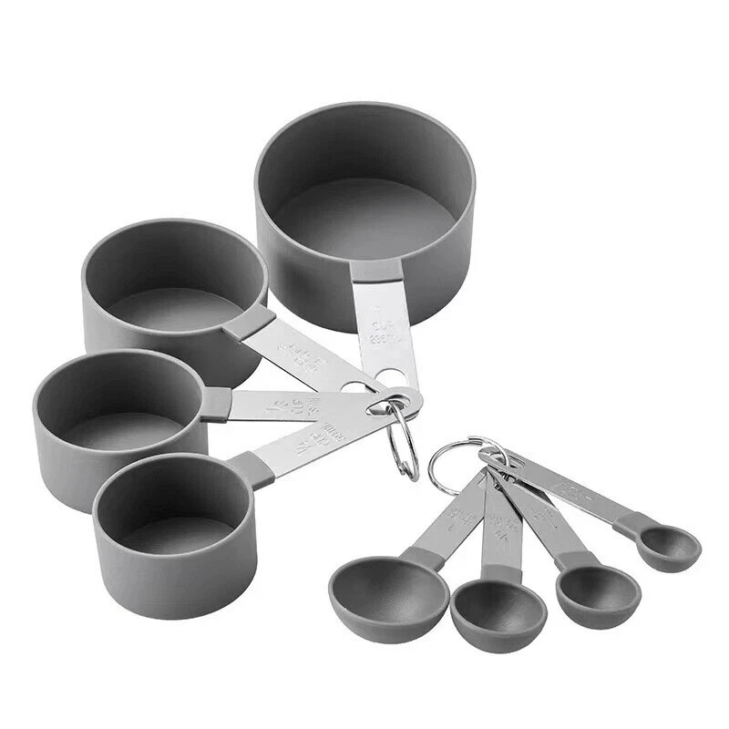 8pcs Measuring Cups and Spoons Set with Stainless Steel Handles Baking Kitchen