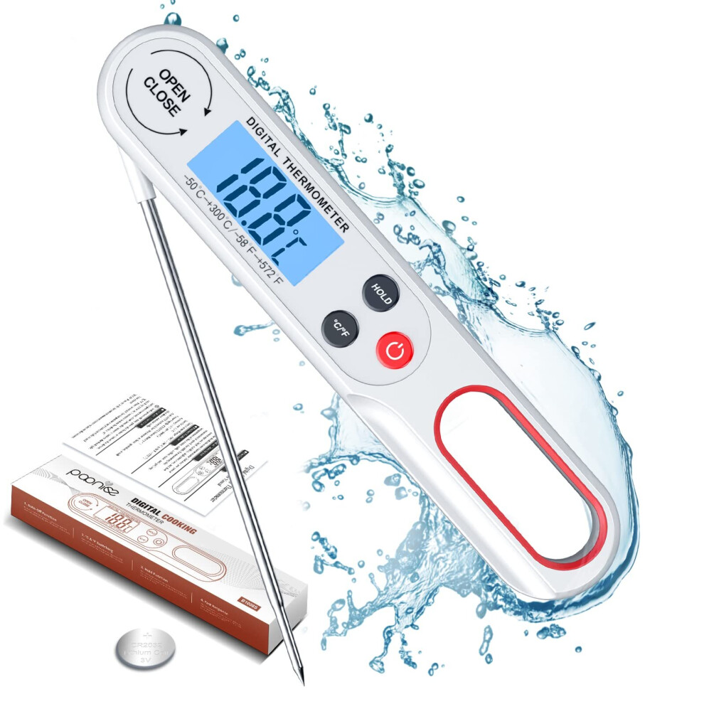 ThermoPro TP03H Meat Thermometers with IPX6 Waterproof, Instant Read Food Thermometer Foldable Temperature Probe with Calibration & Lock Function, Cooking Thermometer for Air Fryers, Kitchen, BBQ Oven