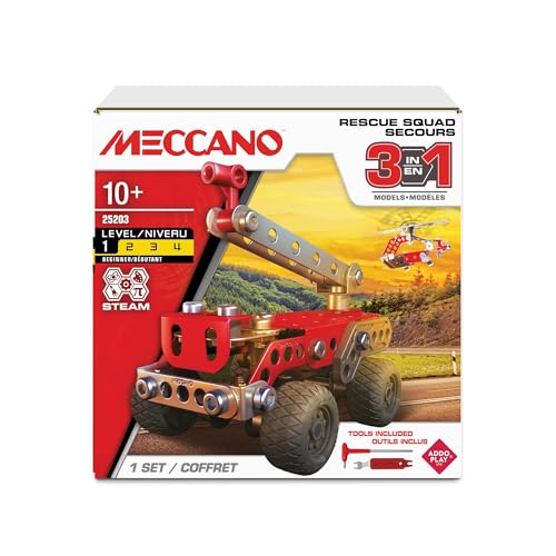 Meccano 3-in-1 Rescue Squad Construction Set Construction Toys STEM Learning Kids Activity Build Rescue Vehicle Fire Truck Boys Girls Gift Create Make Yourself