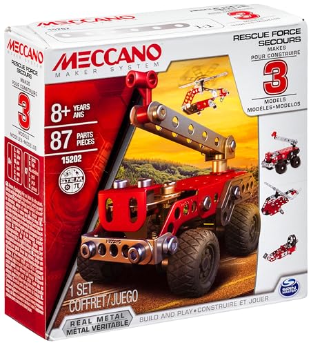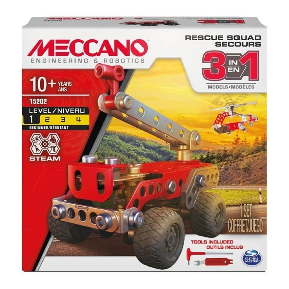 MECCANO, 3 Model Set - Rescue with 87 Parts and 2 Real Tools Kids STEM Construction Education Toy, Model Building Kit for Boys and Girls Aged 8 and Up