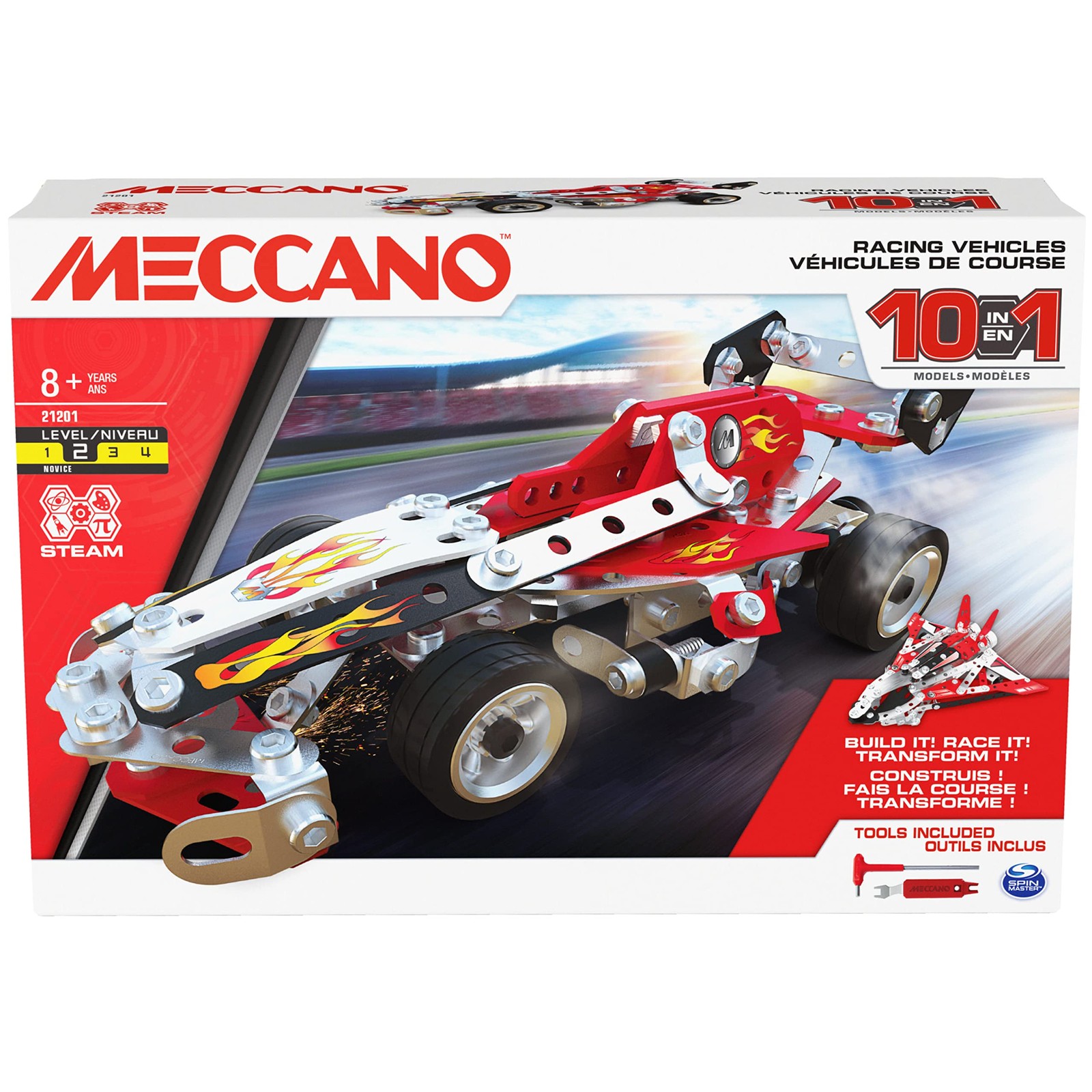 MECCANO, 10-in-1 Racing Vehicles STEM Model Building Kit with 225 Parts and Real Tools, Kids Toys for Ages 8 and Up