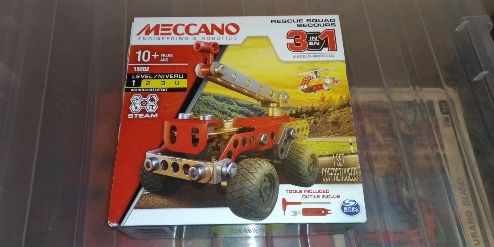 Meccano 3 in 1 Rescue Squad Set 15202 - Helicopter Air Boat Fire Engine - New