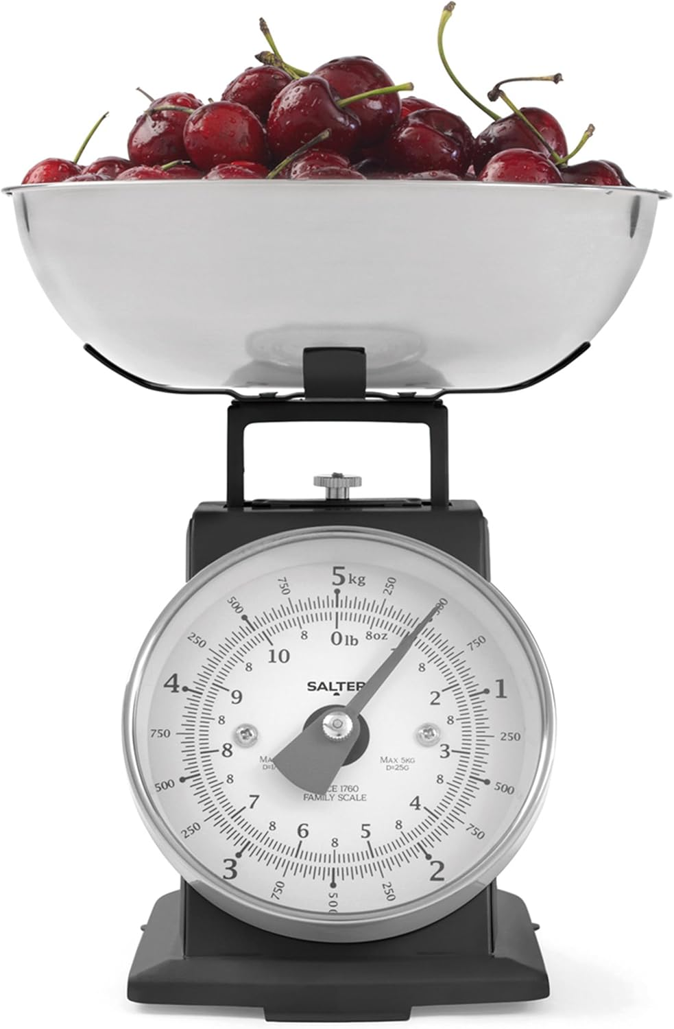Salter Timeless Mechanical Kitchen Scale – 5kg Capacity Baking Scale, 1 Litre Dishwasher Safe Bowl, Analogue Food Scale, Classic Design, Easy Read Large Dial, 22cm Height, No Batteries Needed, Black