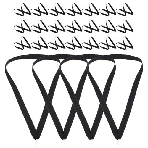 Toyvian 30Pcs Black Medal Award Lanyards with Snap Clip, Neck Hanging Ribbons for Sports Events, Student Competitions, Visitor Badge Holders, Party and Award Medallion Strings