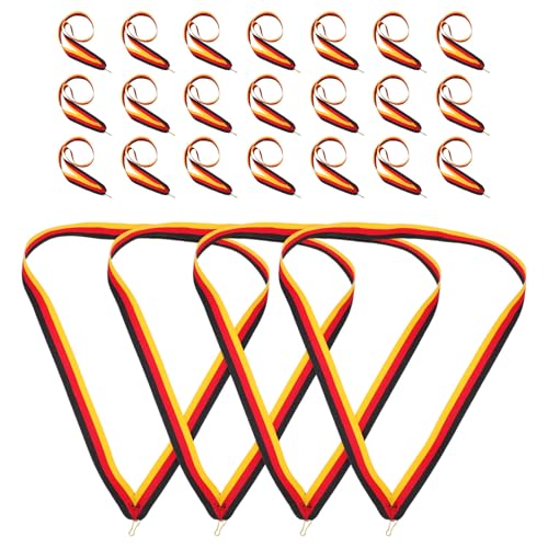Outanaya 30Pcs Medal Award Lanyards with Clip Closure, Striped Neck Straps in Yellow Red Black for Sports Ceremonies, Student Id Badge Holders and Party Medals