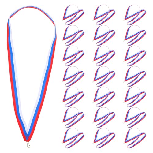 UTHCLO 30pcs Award Medal Lanyards with Safety Snap Clip, Red Blue White Neck Straps for Sports Ceremonies, Student Id Badge Holders, Party and Competition Ribbon Accessories