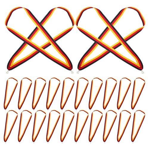 BUGUUYO 30Pcs Sports Medal Lanyards with Metal Clip and Snap Hook, Yellow Red Black Neck Straps for Award Ceremonies, Competition Medals, and Id Badge Holders