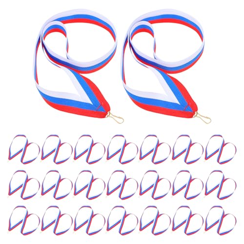 VICASKY 30Pcs Medal Neck Lanyards with Snap Clips – Red Blue White Ribbon Strings for Sports Awards, School Competitions, and Running Medal Badge Holders