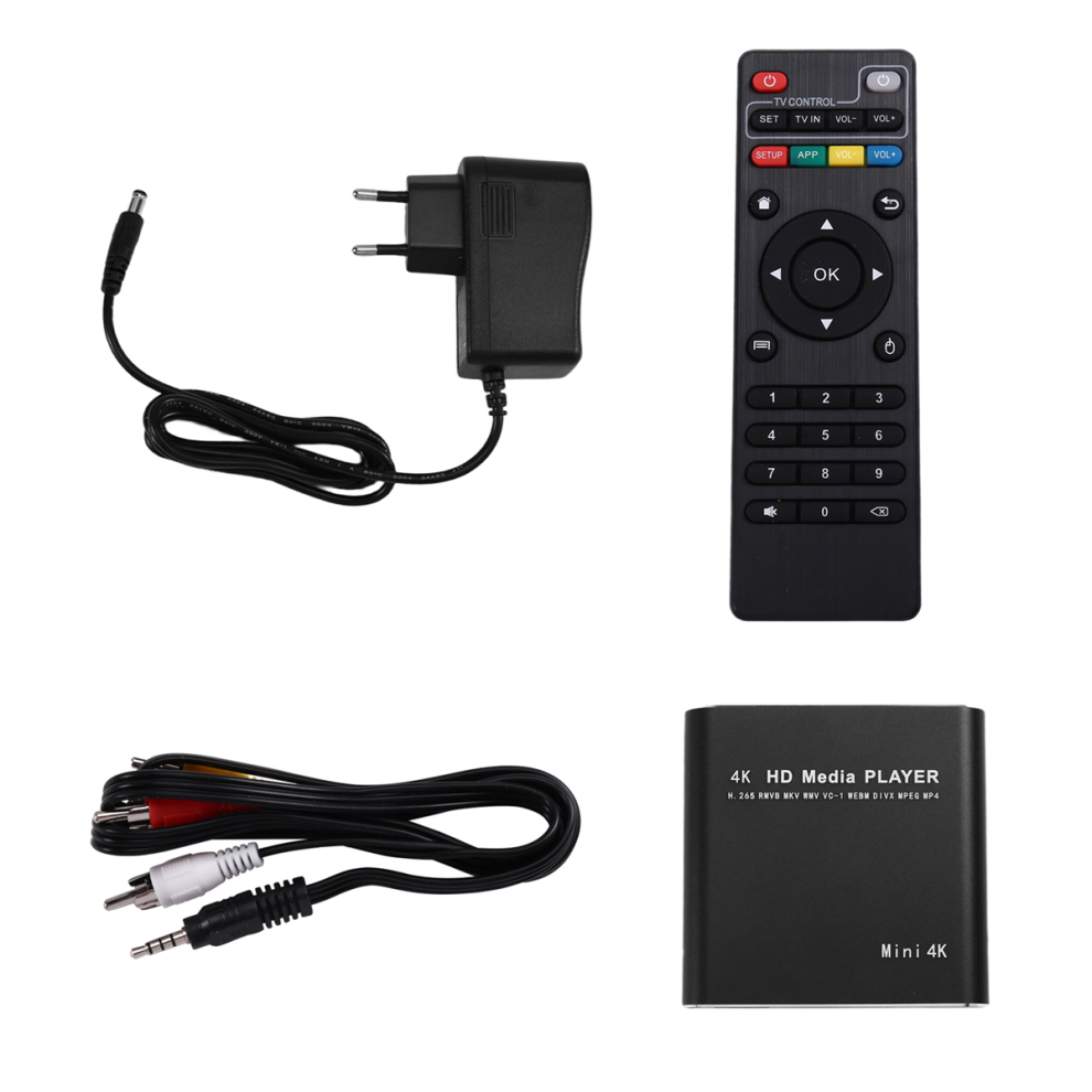 4K Ultra HD Media Player for Car TV MMC RMVB MP3 USB External HDD U Disk MultiMedia Media Player Box EU PLUG