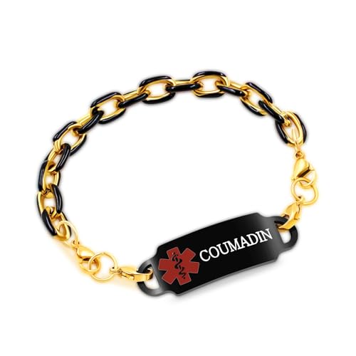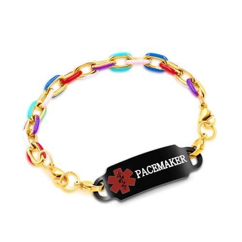 Gold Plated Stainless Steel Medical Alert Bracelets for Women Men - Color Enamel Lobster Buckle Link Medical Assistance Bracelet YA5205